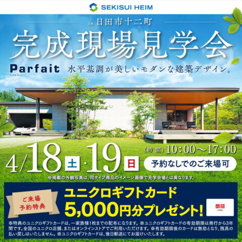 【4/18(土)・19(日)】オーナー様邸 完成現場見学会開催! ㏌日田市十二町