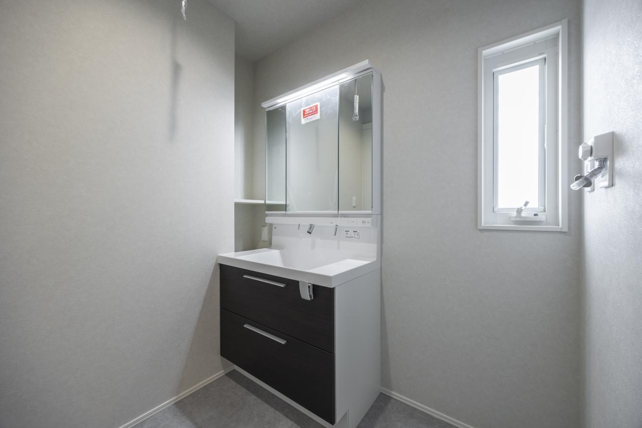 洗面脱衣室には物干しフックがあるので急な雨でも安心