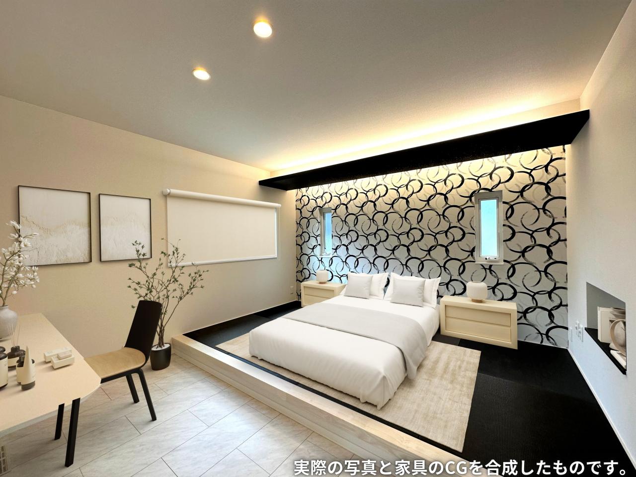 和モダンな主寝室で旅館風の就寝スペース