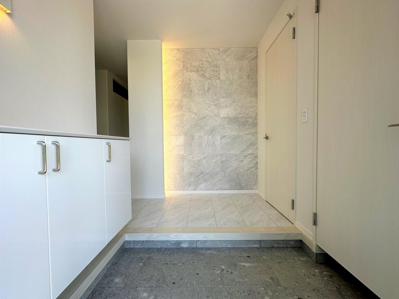 たっぷり収納と洗面へのアクセスがしやすい玄関ホール