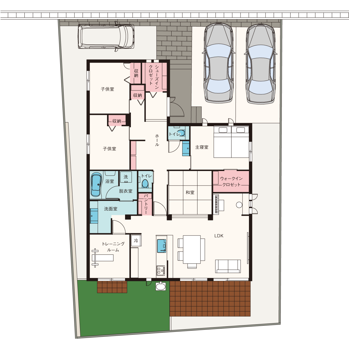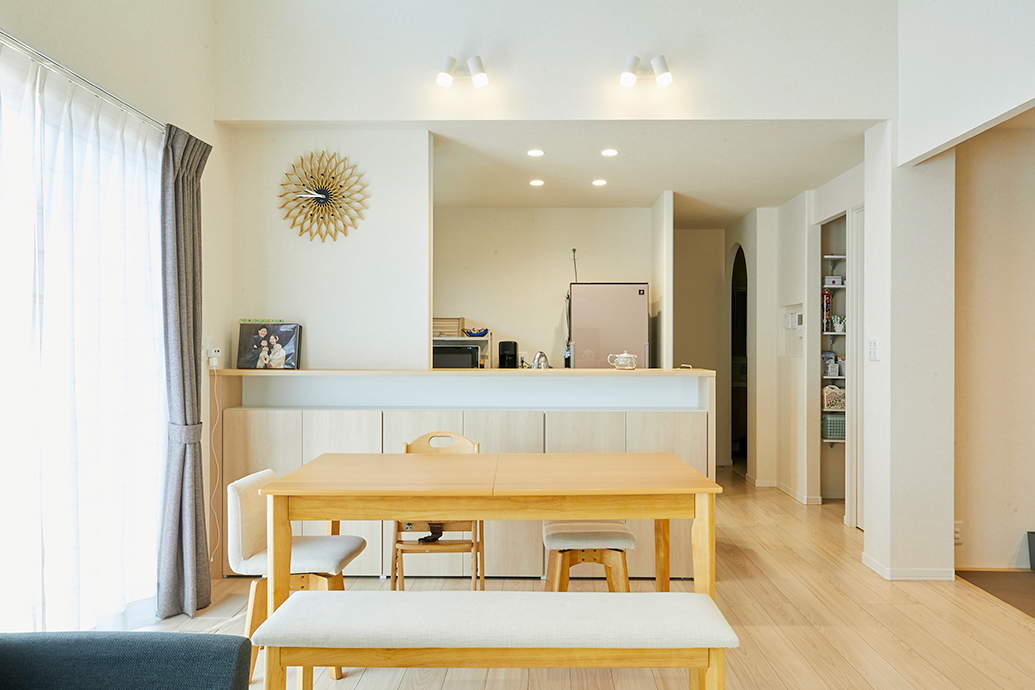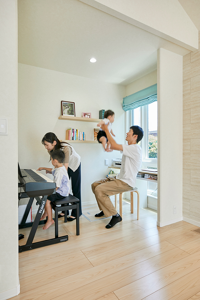 セキスイハイムの平屋のモデルハウスに出会われたのはそんな折。「平屋住宅なのに吹き抜けがあってゆったりと広がる空間に驚き、平屋の住まいに惹かれていきました」とご主人。ご長男が1歳半の頃には念願の吹き抜けのある平屋の住まいが完成し、第2子の誕生を新しい住まいで迎えることができました。