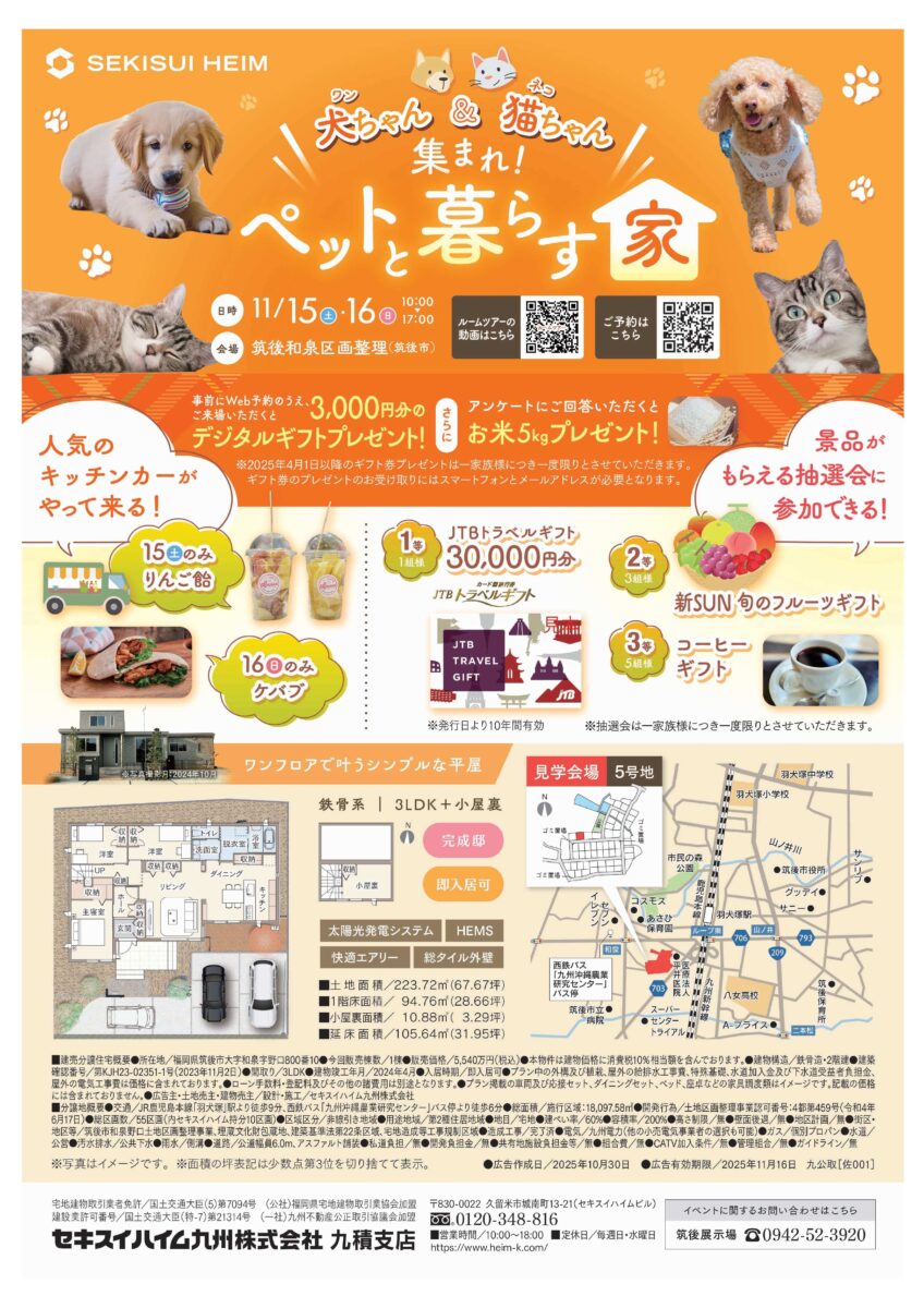 筑後市和泉にてペットと暮らせる建売のお家見学会を開催いたします。