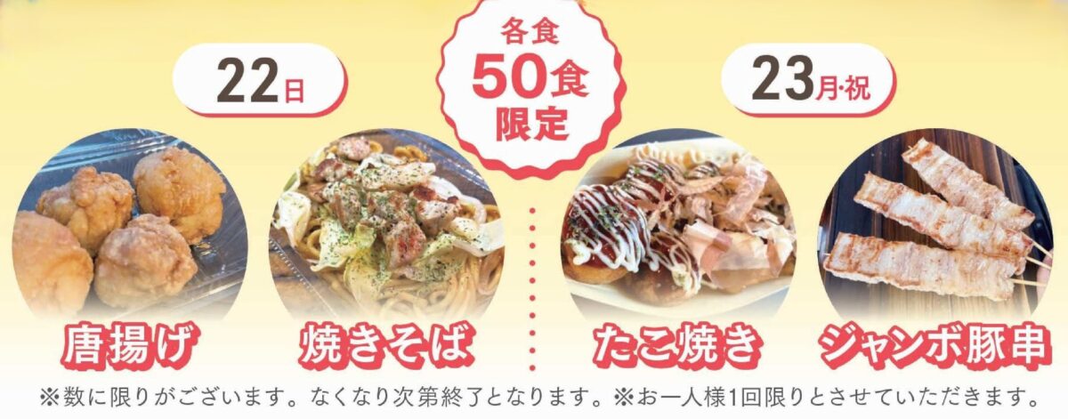 ※キッチンカーや駄菓子は数に限りがございます。無くなり次第終了となります。