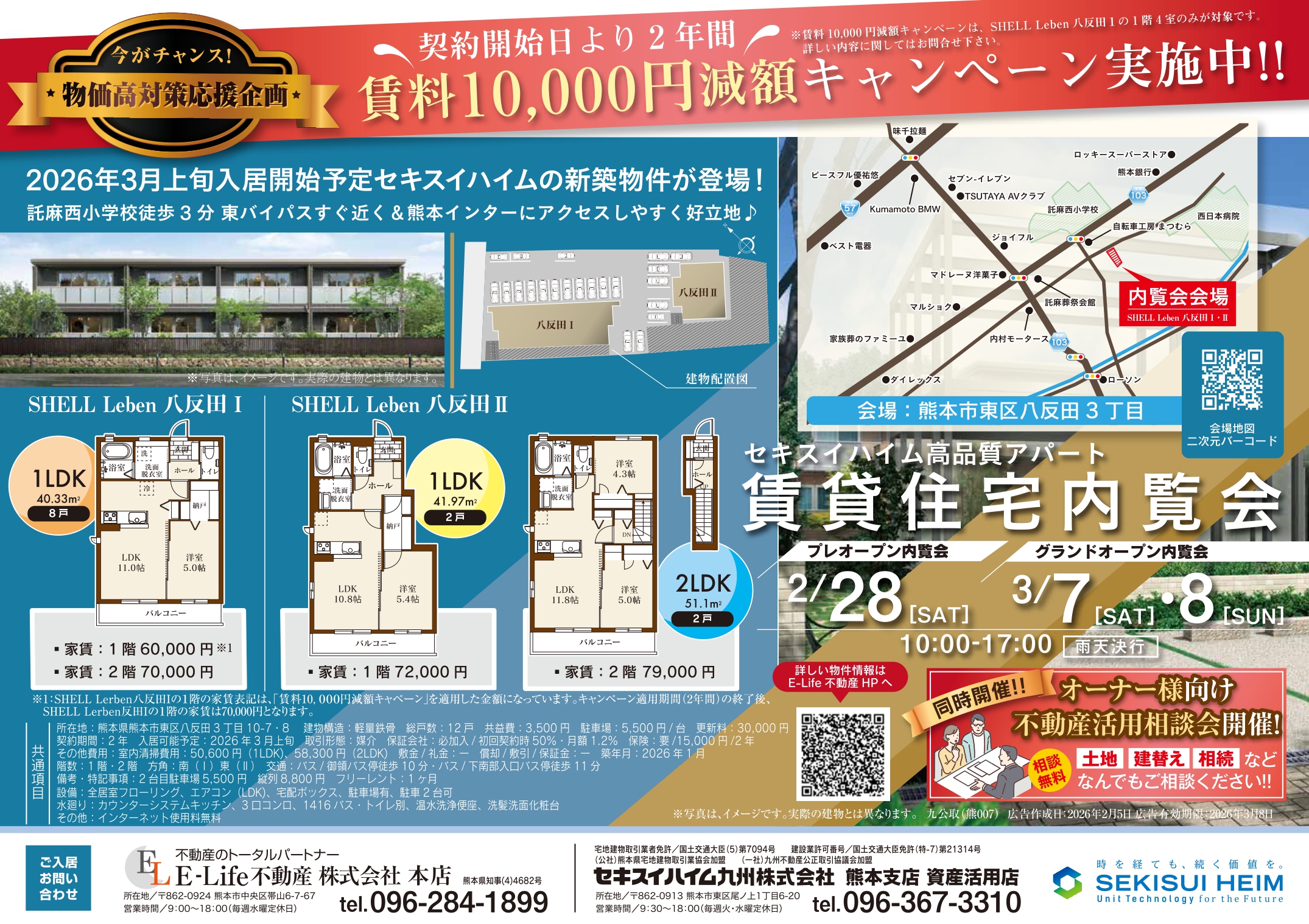 東区八反田にて、新築アパートの内覧会を実施します🏢