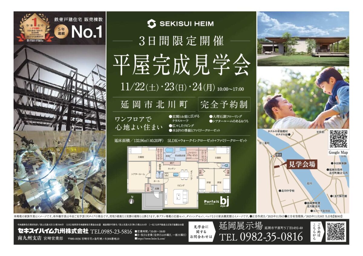 11月22日(土)・23日(日)・24日(月)3日間限定開催で平屋完成見学会を開催いたします‼
