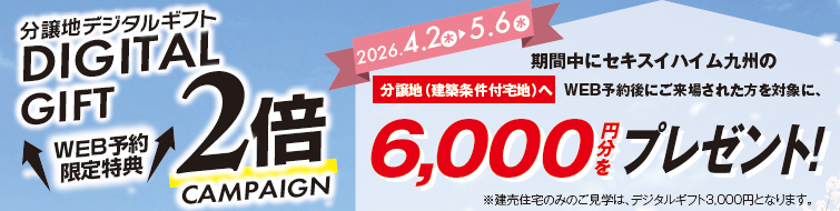 ●期間中、Web予約にてご来場で「デジタルギフト6,000円分をプレゼント♪