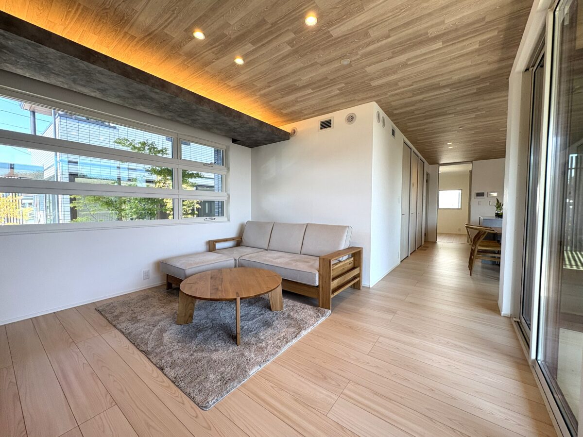 南東面に開け放たれた大開口から降り注ぐ自然光