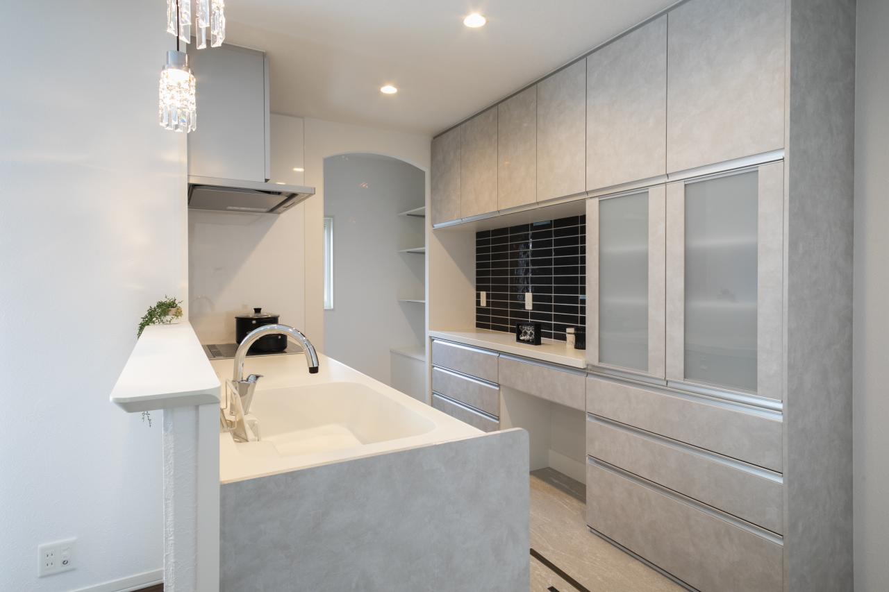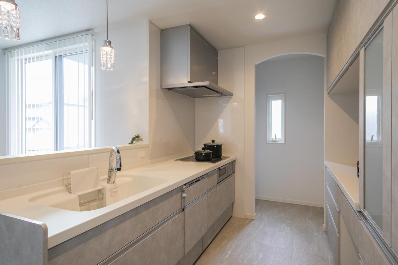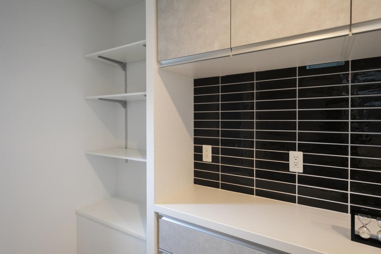 キッチン横のパントリーで週末の食料品をたっぷり収納