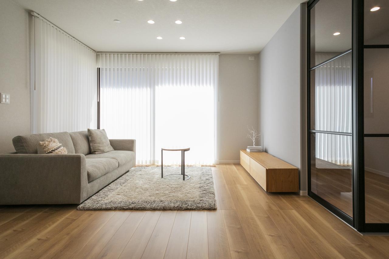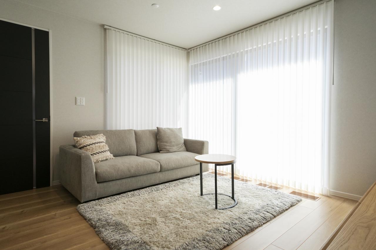 大きな窓から陽光差し込む明るいリビング