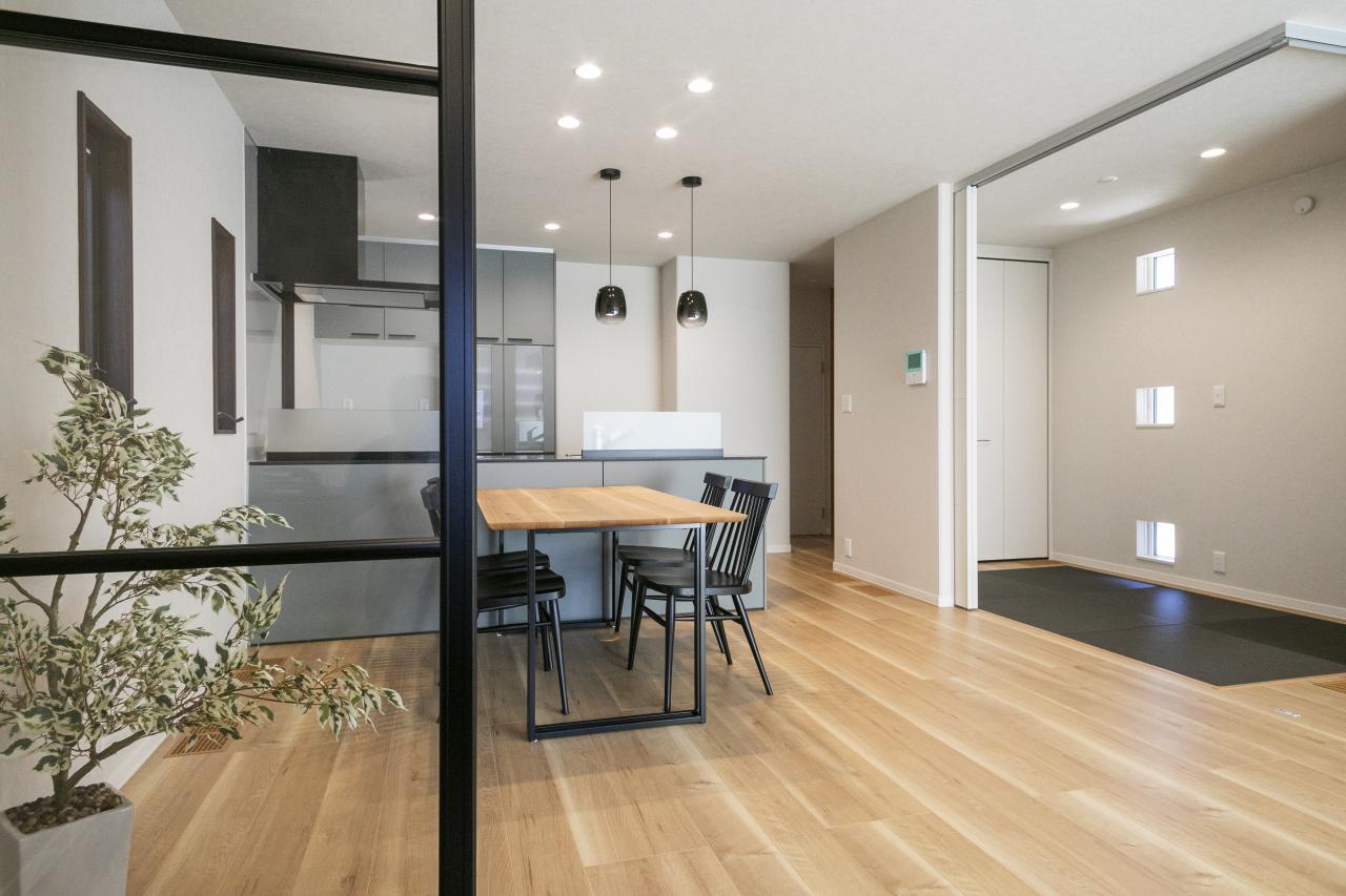 シックな色合いのLDKは落ち着きの空間に