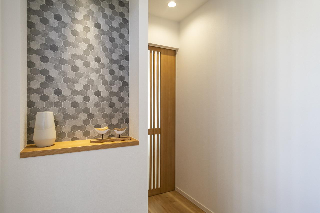 ゲストを迎える玄関は飾り棚がアクセントに