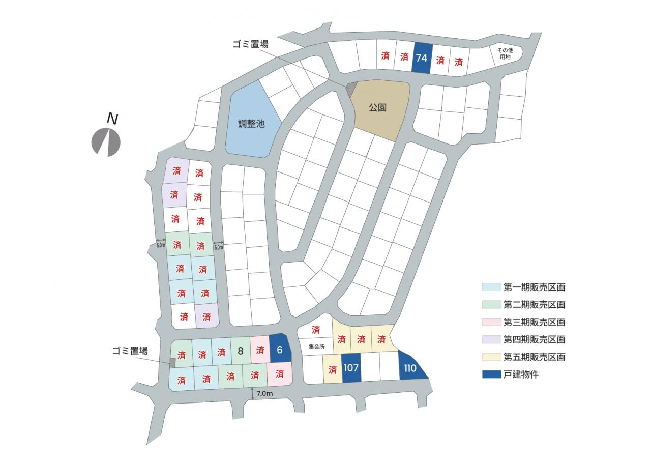 《分譲地概要》【総面積】開発面積:30,252.97m2【総区画数】110区画(内セキスイハイム持分38区画)【開発行為】検査済証:宮開第52号2(令和3年9月27日)【都市計画】市街化区域【高さ制限】10m【壁面後退】1m【地区計画】無【街区・地区等】建築基準法第22条区域、宅地造成等工事規制区域【造成工事】完了済【水道加入金】189,500円(口径20mm、設計検査・完成検査・指定審査手数料含む) 【下水道受益者負担金】230円/m2【開発負担金】無【共有地施設負担金等】集会所建設協力金:100,000円【組合費】自治会「レイクサイド月見ヶ丘自治会」自治会費:4,800円/年、子供会費:300円/月【CATV加入条件】無【管理組合】無【ガイドライン】無【その他】最低敷地面積165m2、ごみ置場自治会所有【建築条件付宅地分譲地】土地売買契約後ただちに建築協議をしていただき、3か月以内にセキスイハイム九州(株)と建築請負契約を結ぶことを停止条件に販売いたします。この期間内に建築しないことが確定したときには、土地売買契約は白紙となり、受領した金銭は全額無利息で返還いたします。