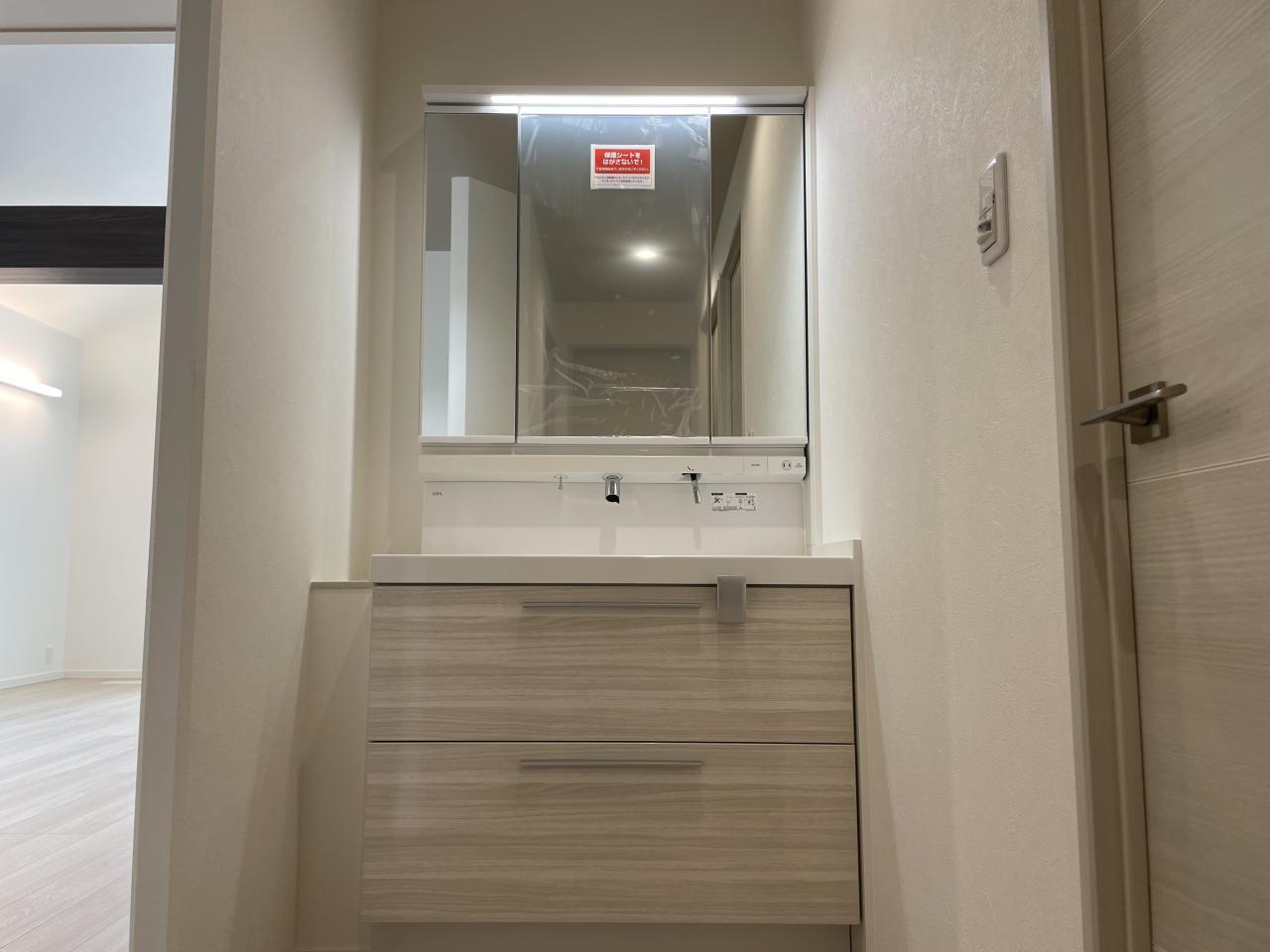 洗面と分けた脱衣室は家族のプライベートを守ります