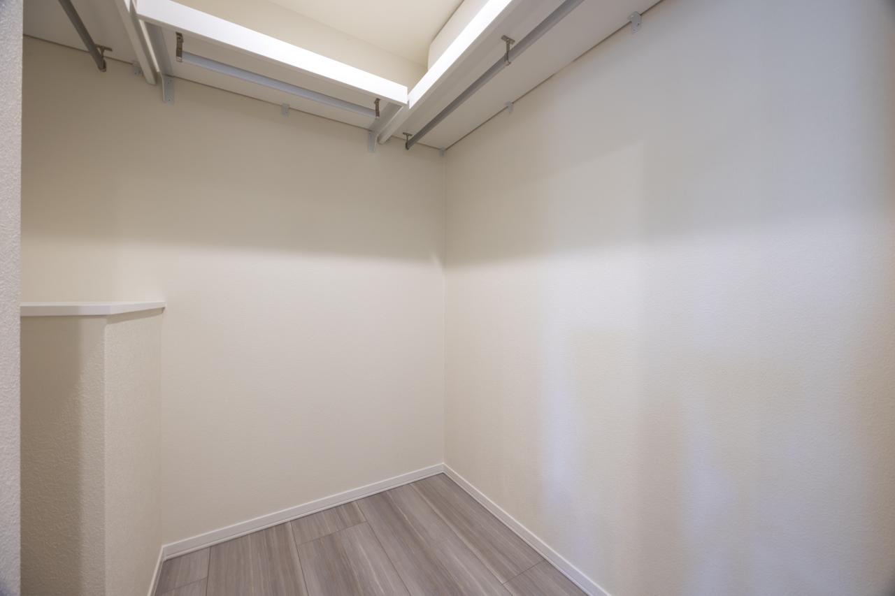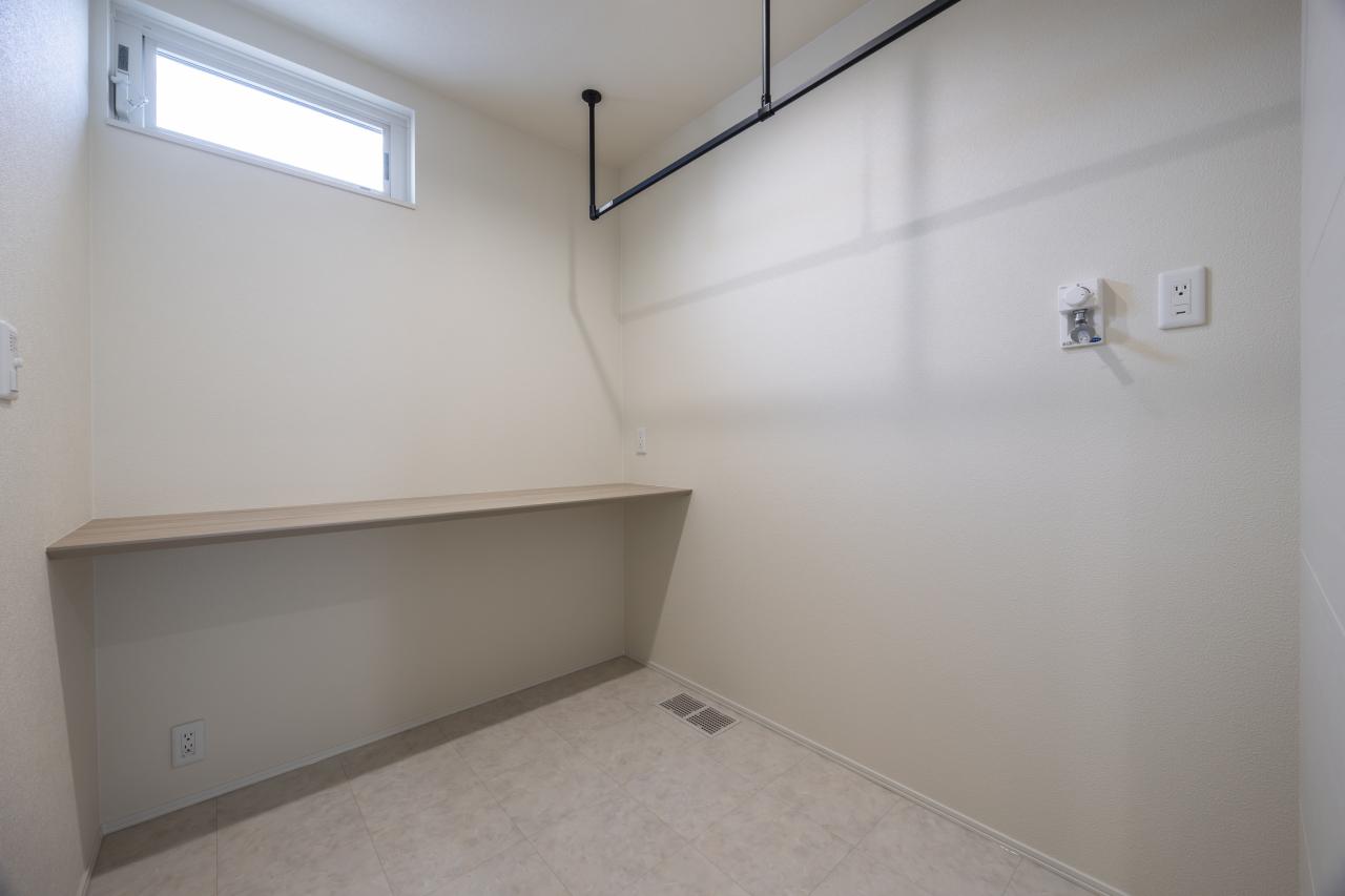 脱衣室にハンギングバーを設置し、室内干しも可能に