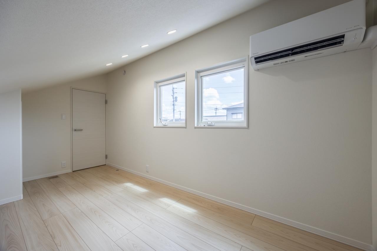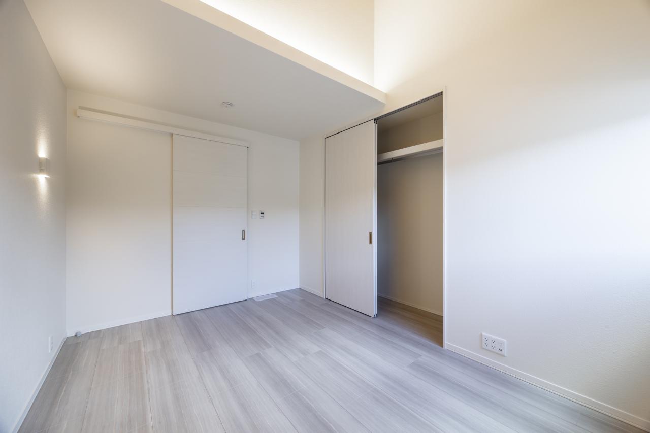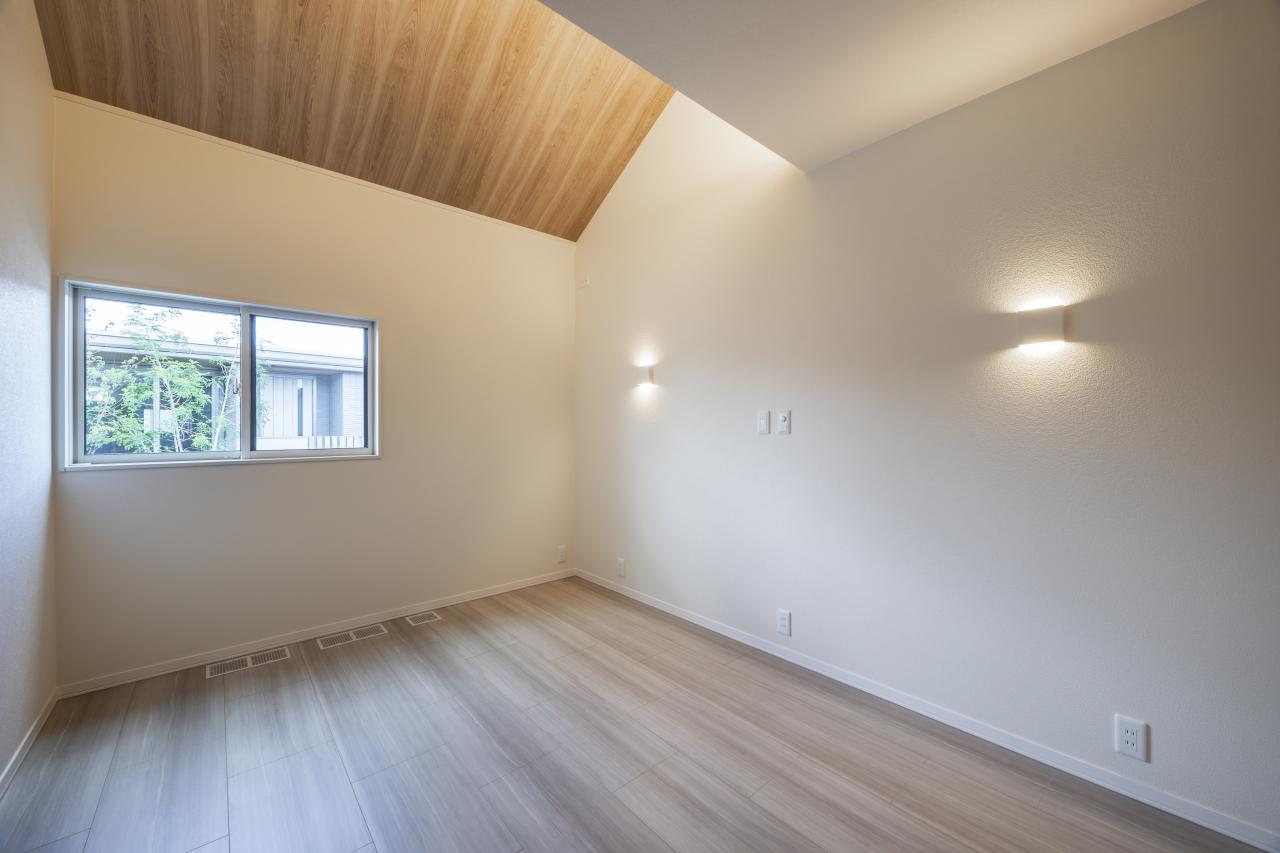 傾斜天井と間接照明がリラックス空間を演出する主寝室