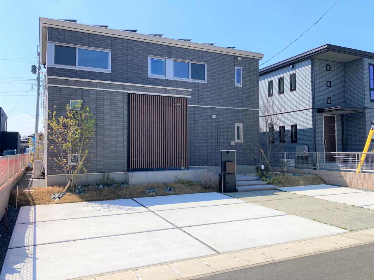 鉄骨系住宅 蓄電池◆12kWh タイル外壁 太陽光発電システム◆8.51kW 快適エアリー HEMS エコキュート オール電化 バリアフリー ZEH 対面キッチン 南面LDK フルフラットキッチン 食洗機 パントリー ウォークインクローゼット シューズインクローゼット 宅配ボックス バルコニー 屋根付きバルコニー エアコン リモコンキー 書斎 家まるごと仕様 脱衣室と洗面室が別 室内物干し ヌック 3台駐車場 ウッドデッキ 浴室スピーカー