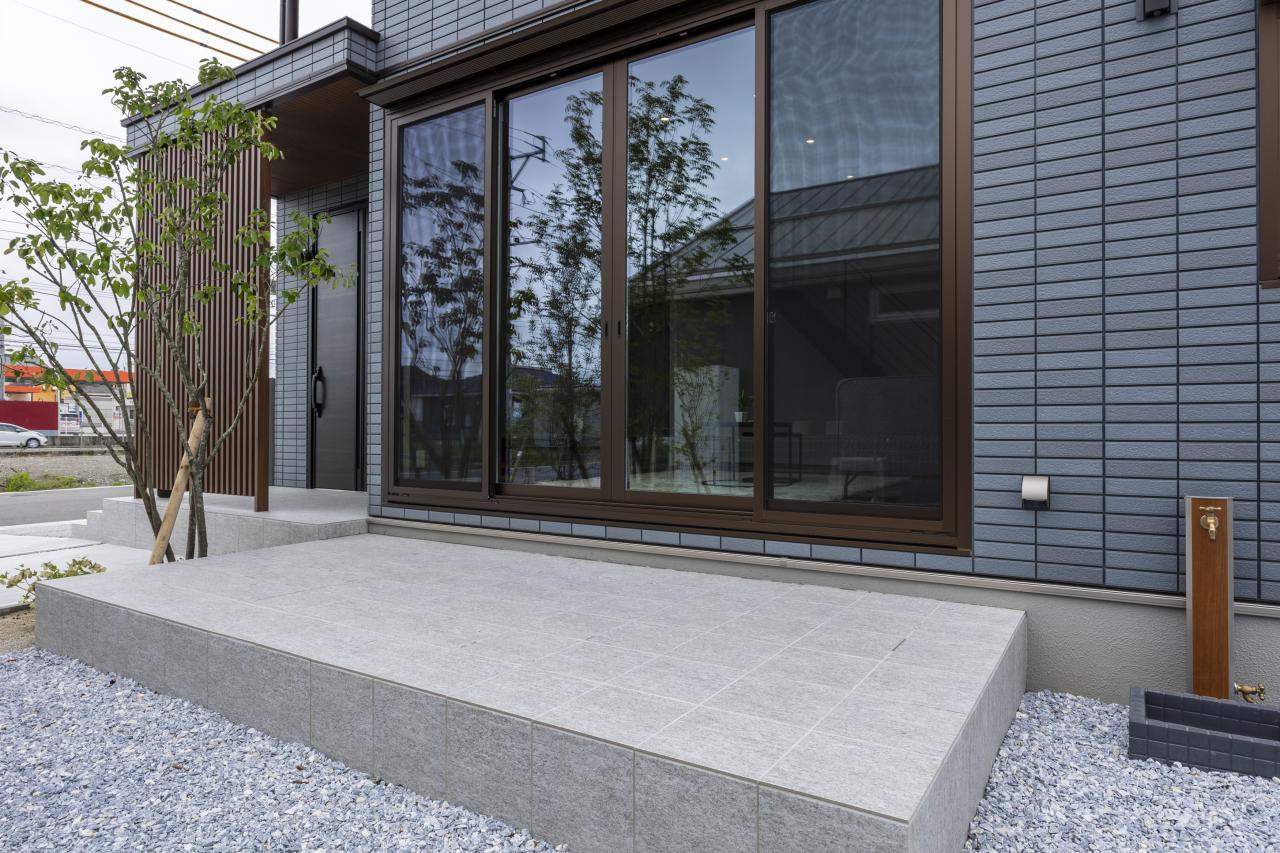 タイルデッキと広々としたお庭で家族団らんおうち時間