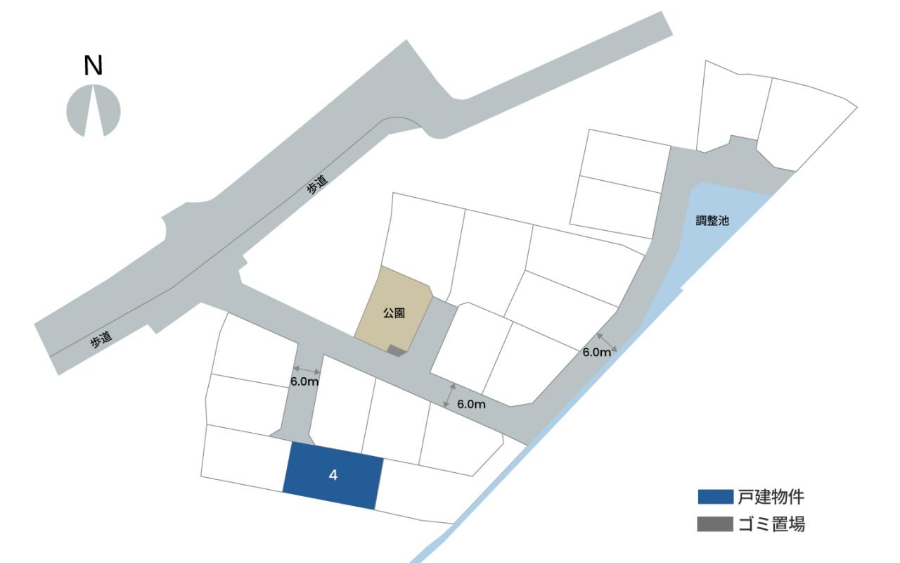 - 私道幅員6.0m、私道負担面積125㎡、持分1/3(2~4号地)