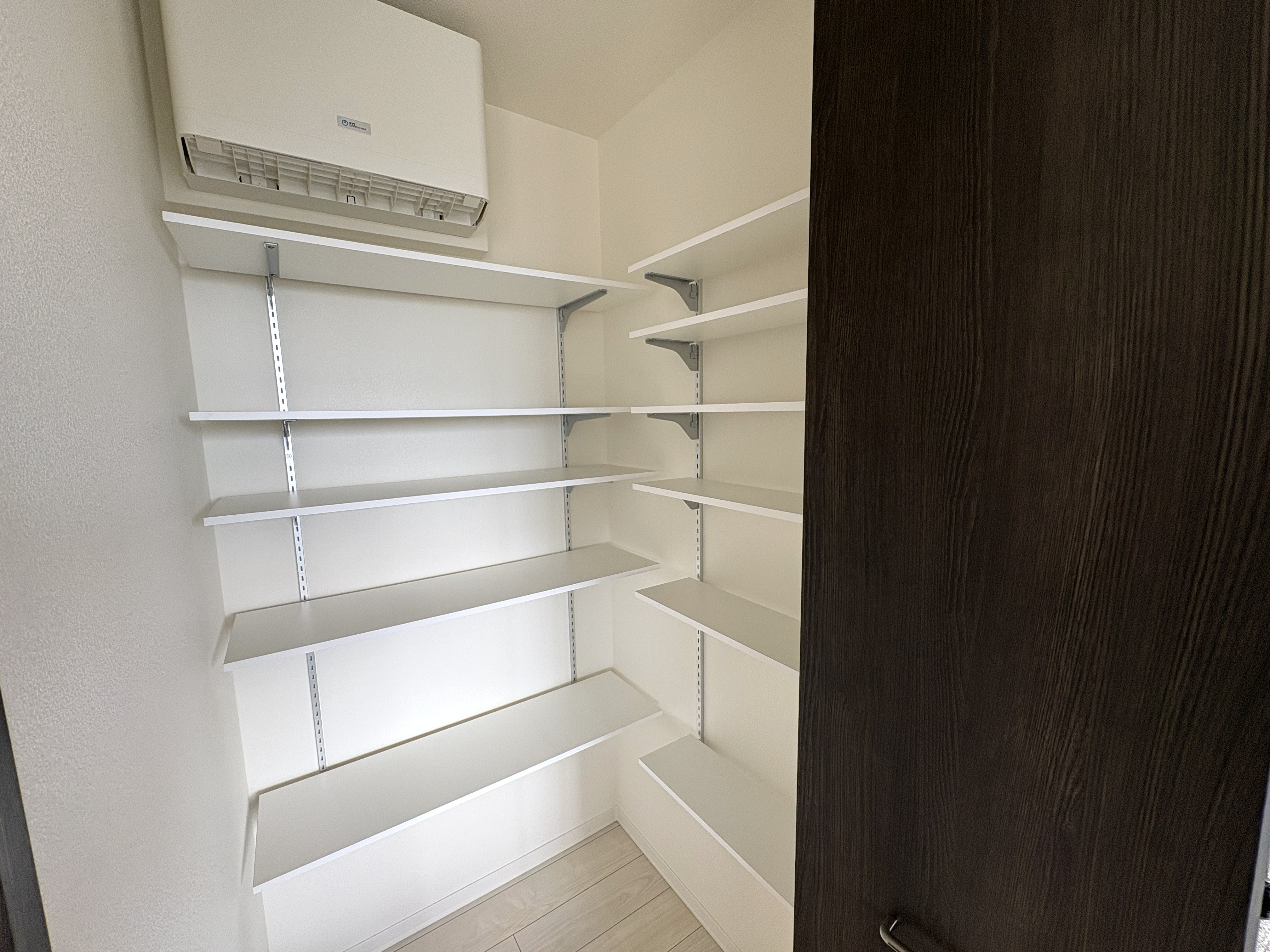 広々した脱衣室は物干しフック付で室内物干しも可能