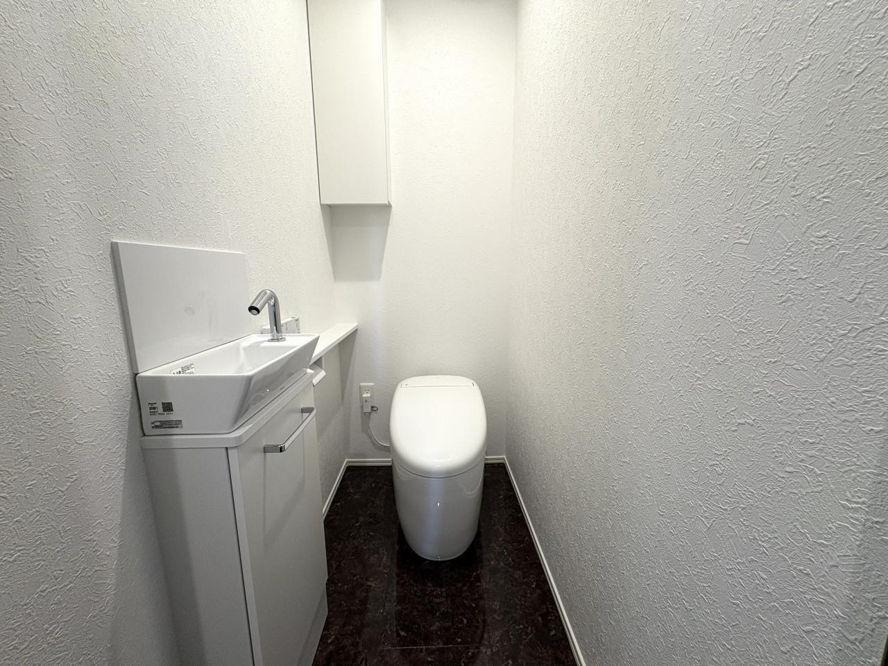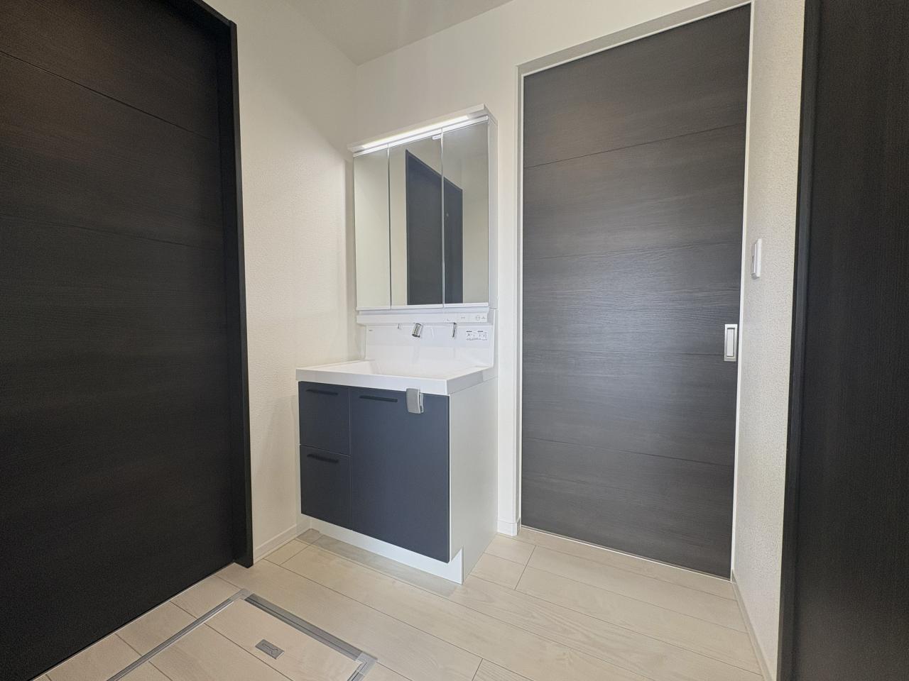脱衣所の外に設けた独立洗面台は来客時も安心