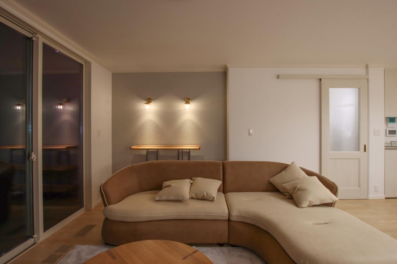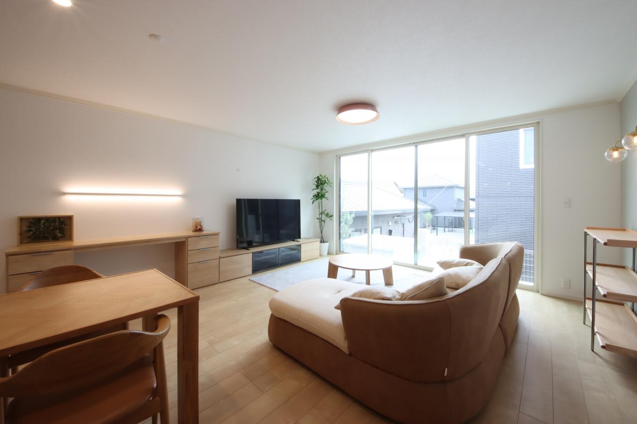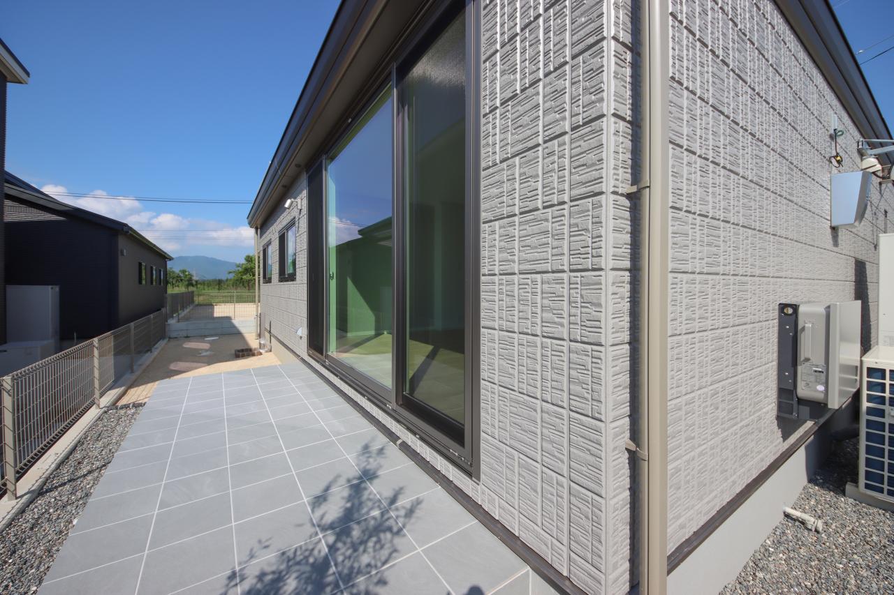 リビングと繋がるタイルデッキはLDKと一体で使える