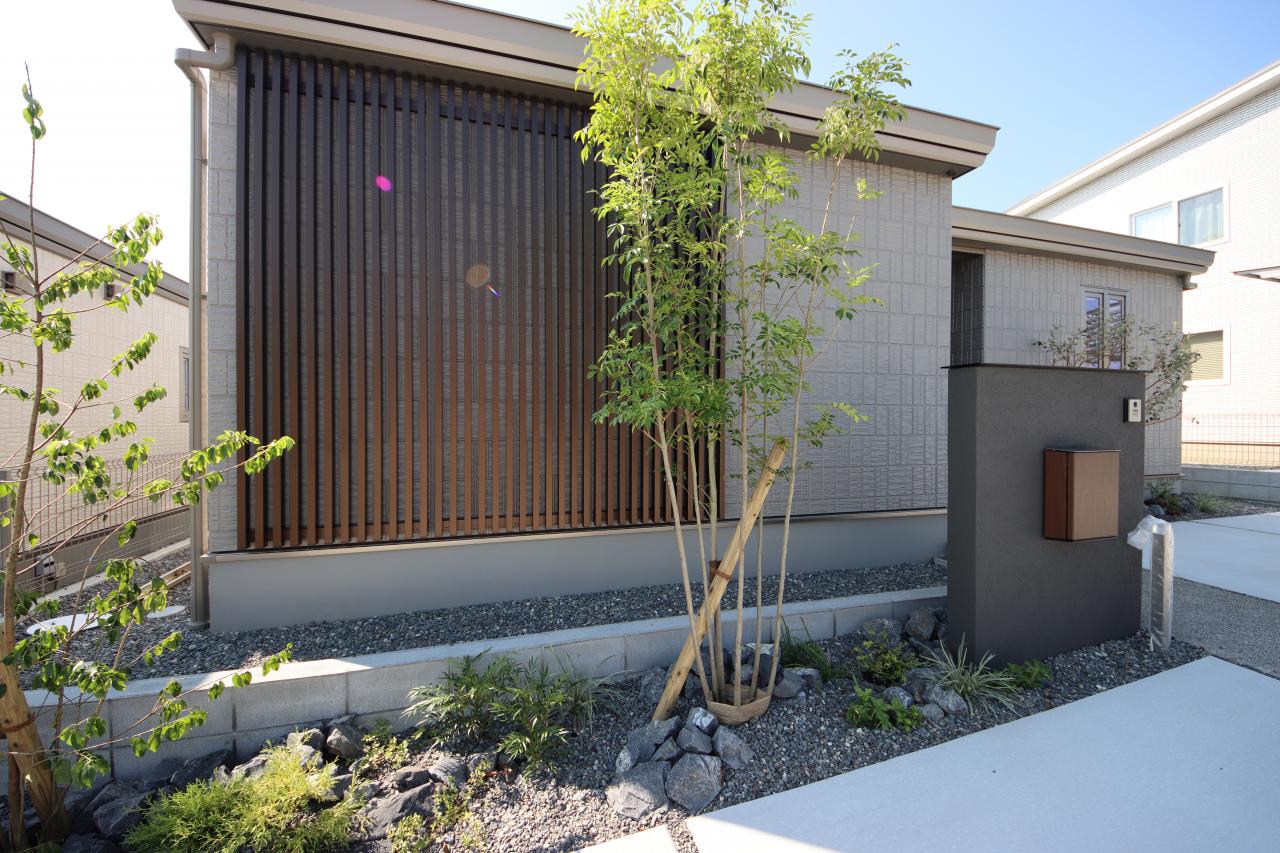 ジオマイト外壁と直線が調和するスタイリッシュな外観