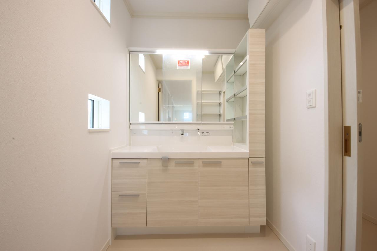 洗面室と脱衣室を分けて配置し、使いやすい空間に