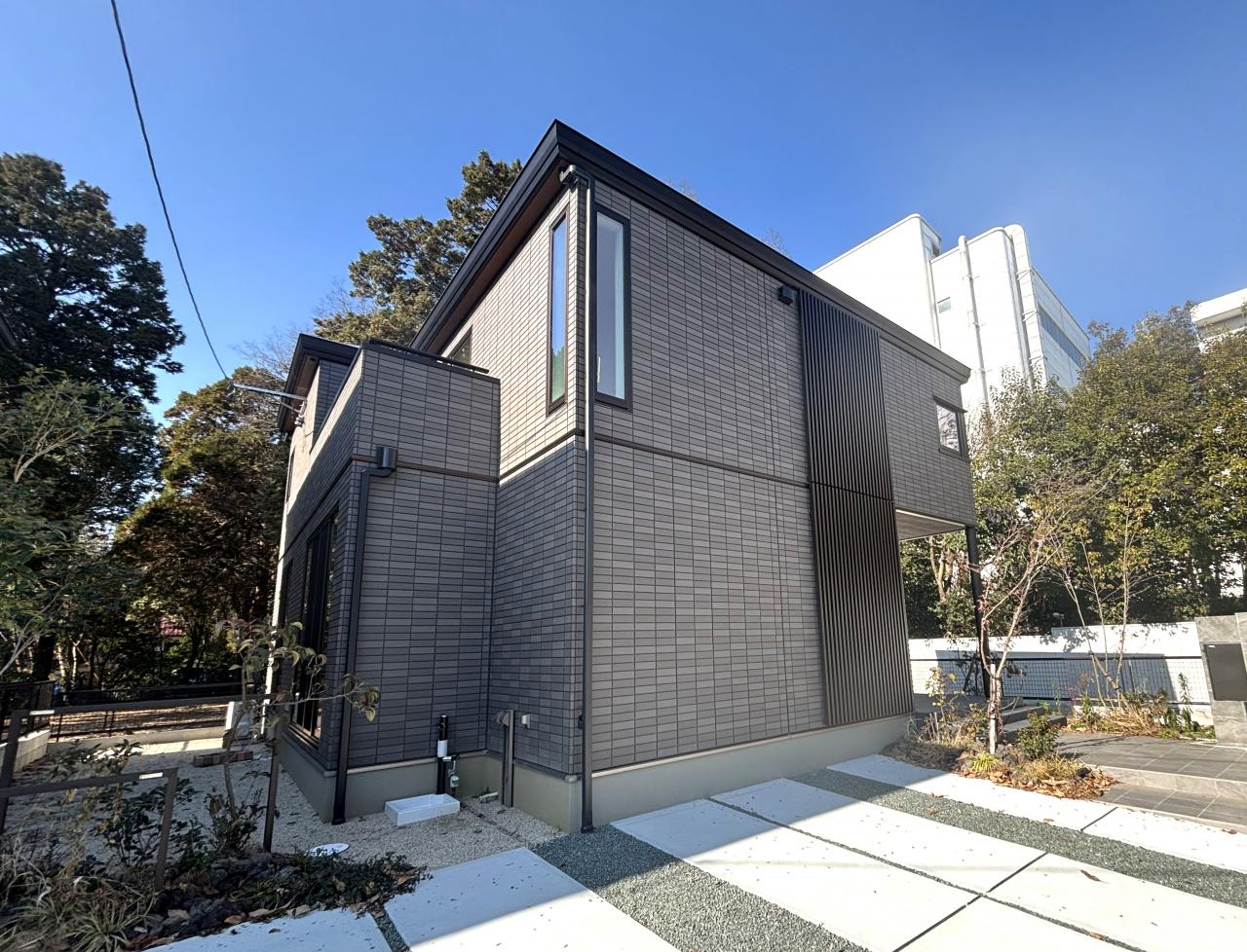 シックなタイル外壁が高級感を一層演出