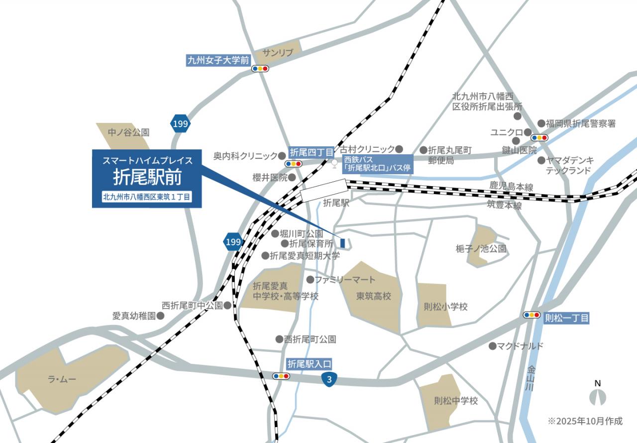 西鉄バス「折尾駅北口」バス停より徒歩7分