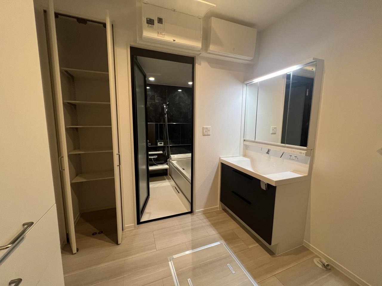 洗面脱衣室はしっかり収納を確保し、使いやすい空間に