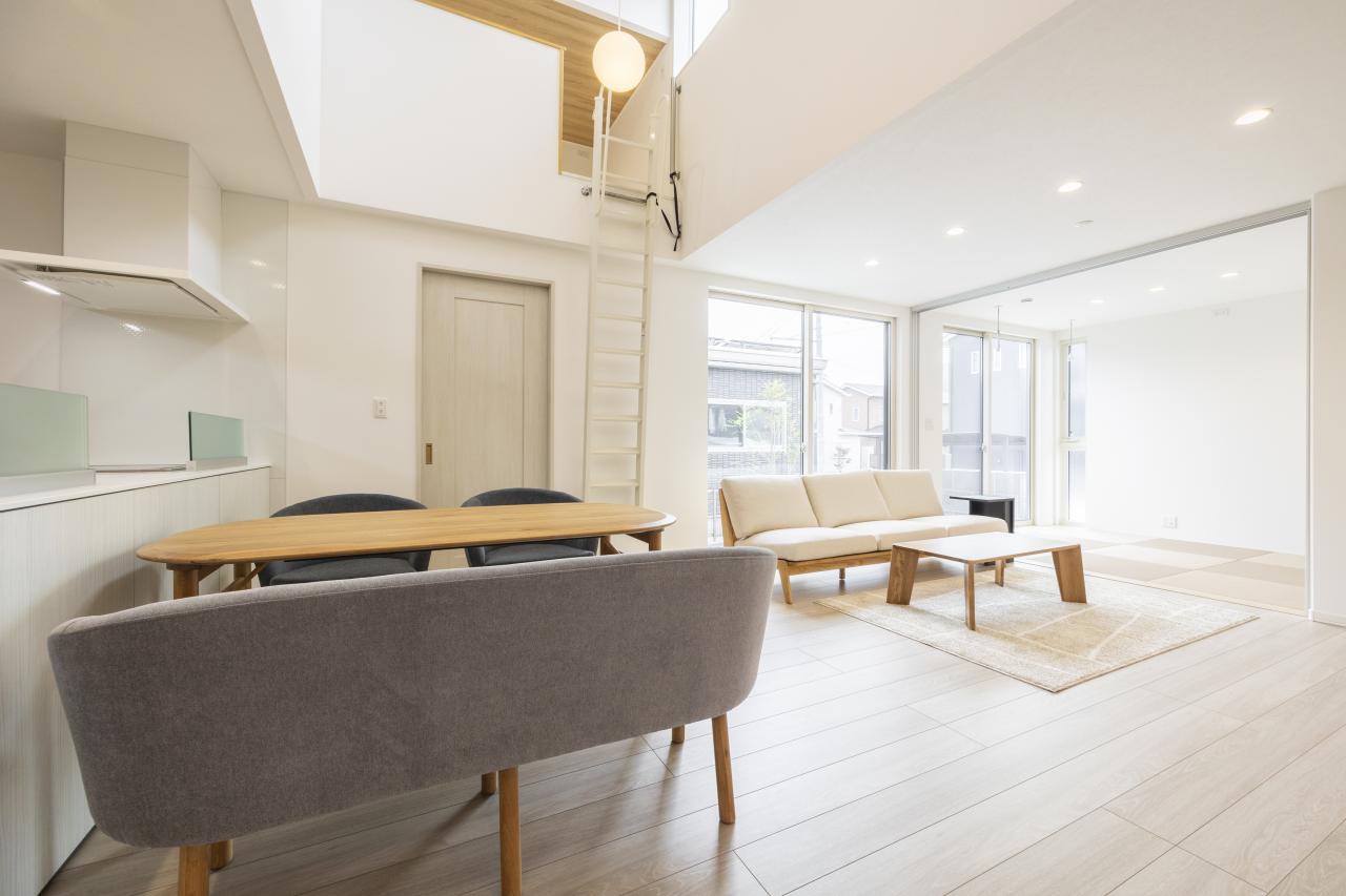 吹き抜けにより明るく開放的なLDK