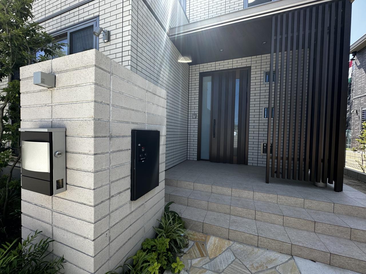 白基調の統一した磁器タイル外壁で重厚感ある外観
