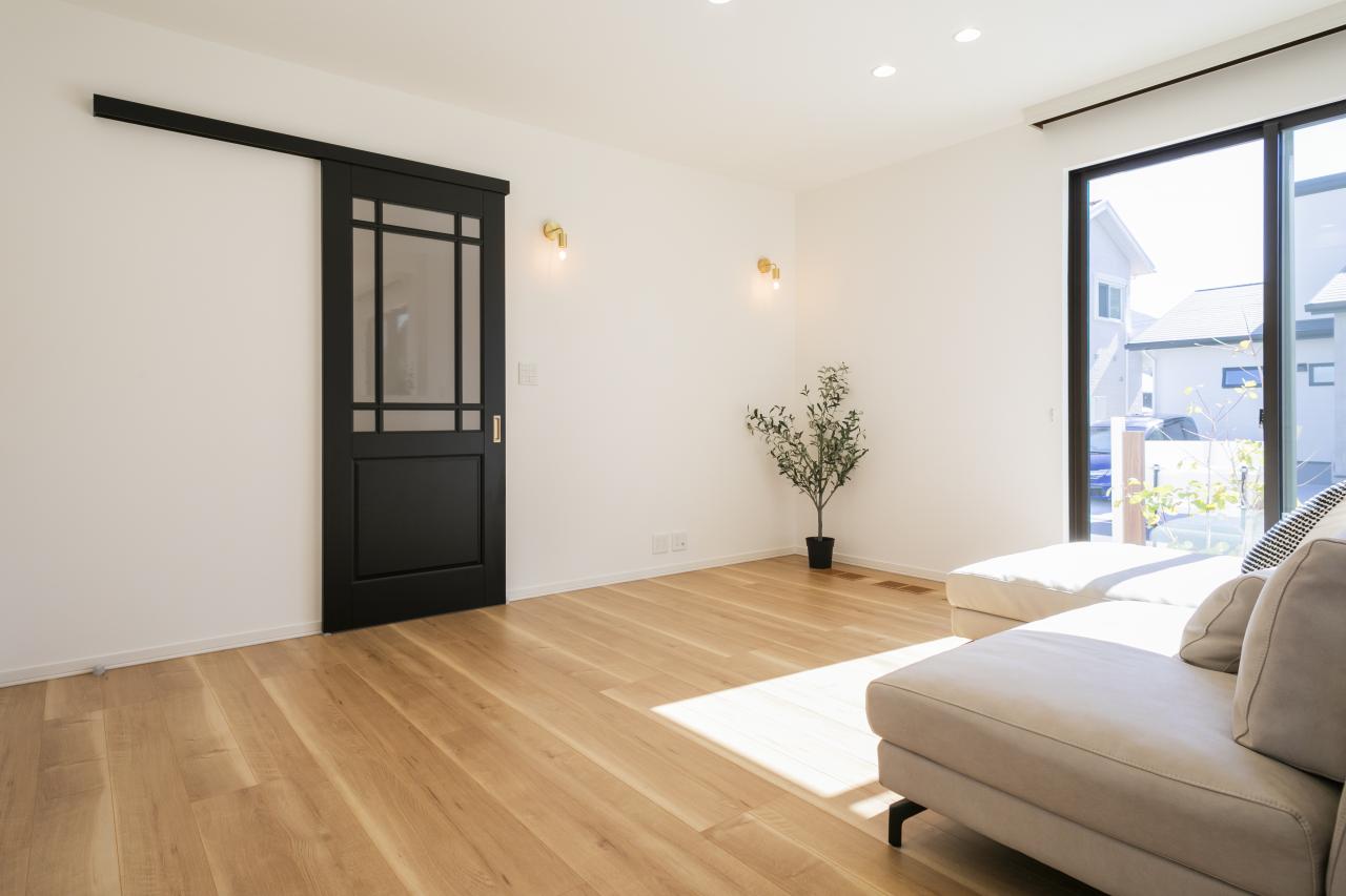 南側の大きな窓から陽光差し込む明るいリビング