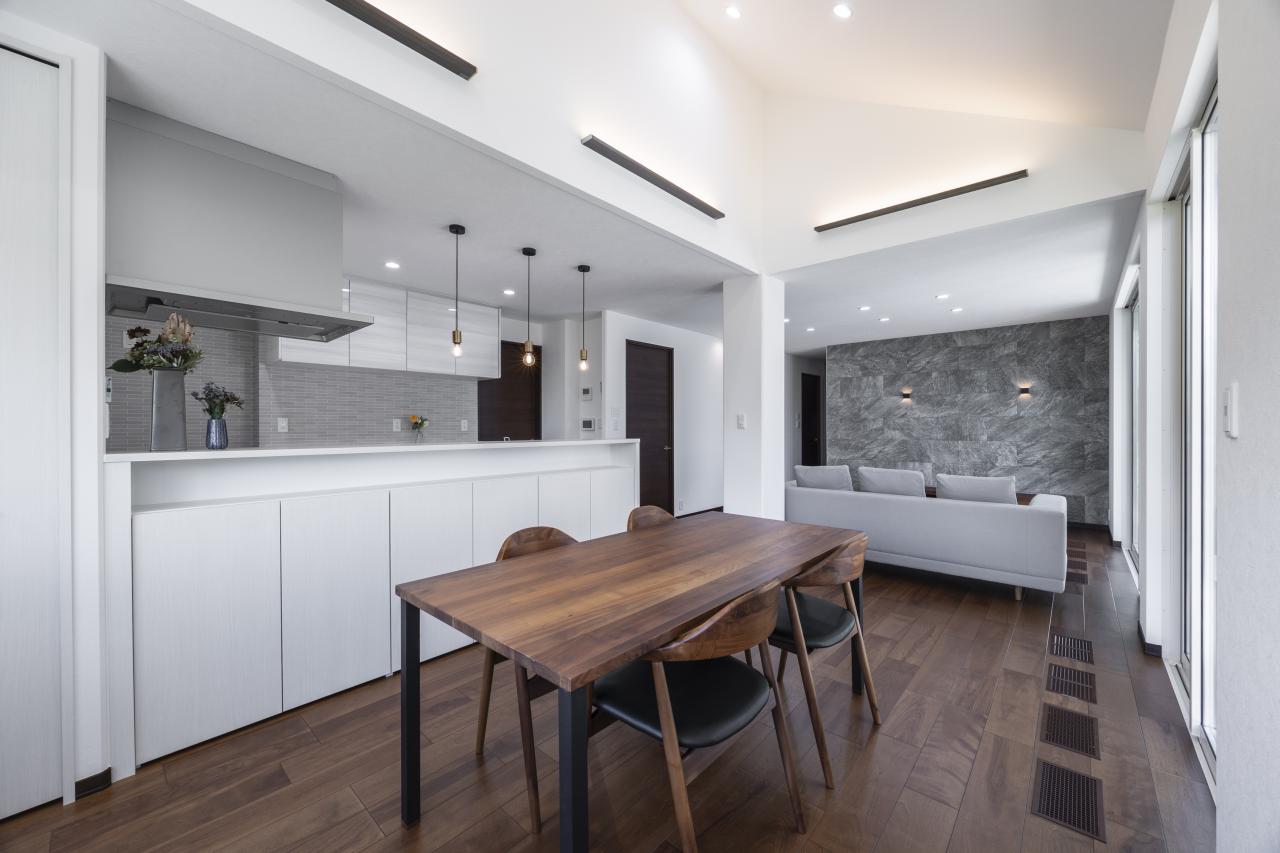 開放感あふれる傾斜天井のダイニング