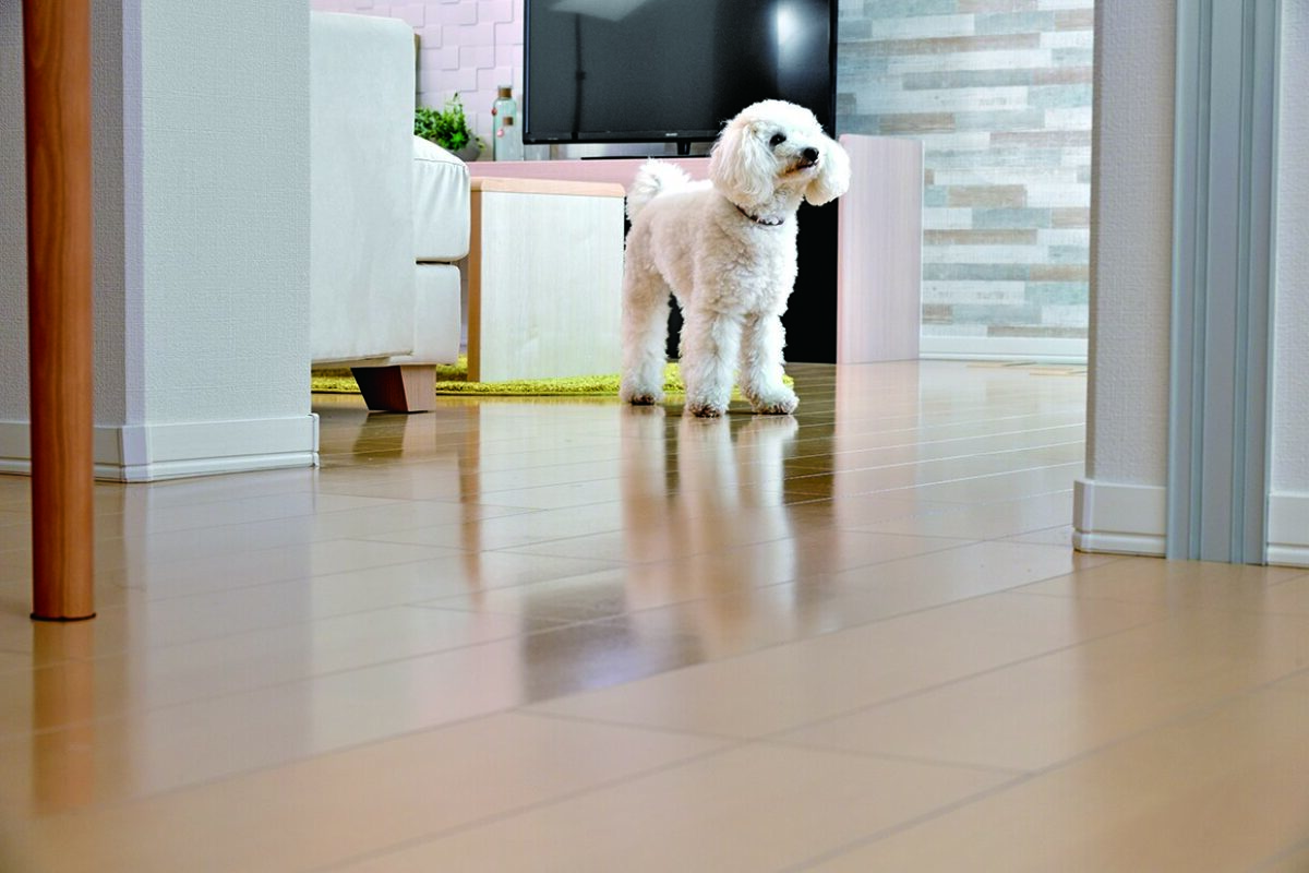 一見ピカピカで気持ちよさそうなフローリング。でも、ペットたちにとっては…まるでスケートリンク!?この“ツルツル床”が原因で、足腰に負担がかかったり、思わぬケガにつながることも。特に足の細い小型犬は、関節を痛めやすいので要注意です。そんなときは、滑りにくいフローリング材やペット専用のコーティングで“すべらない床づくり”を。