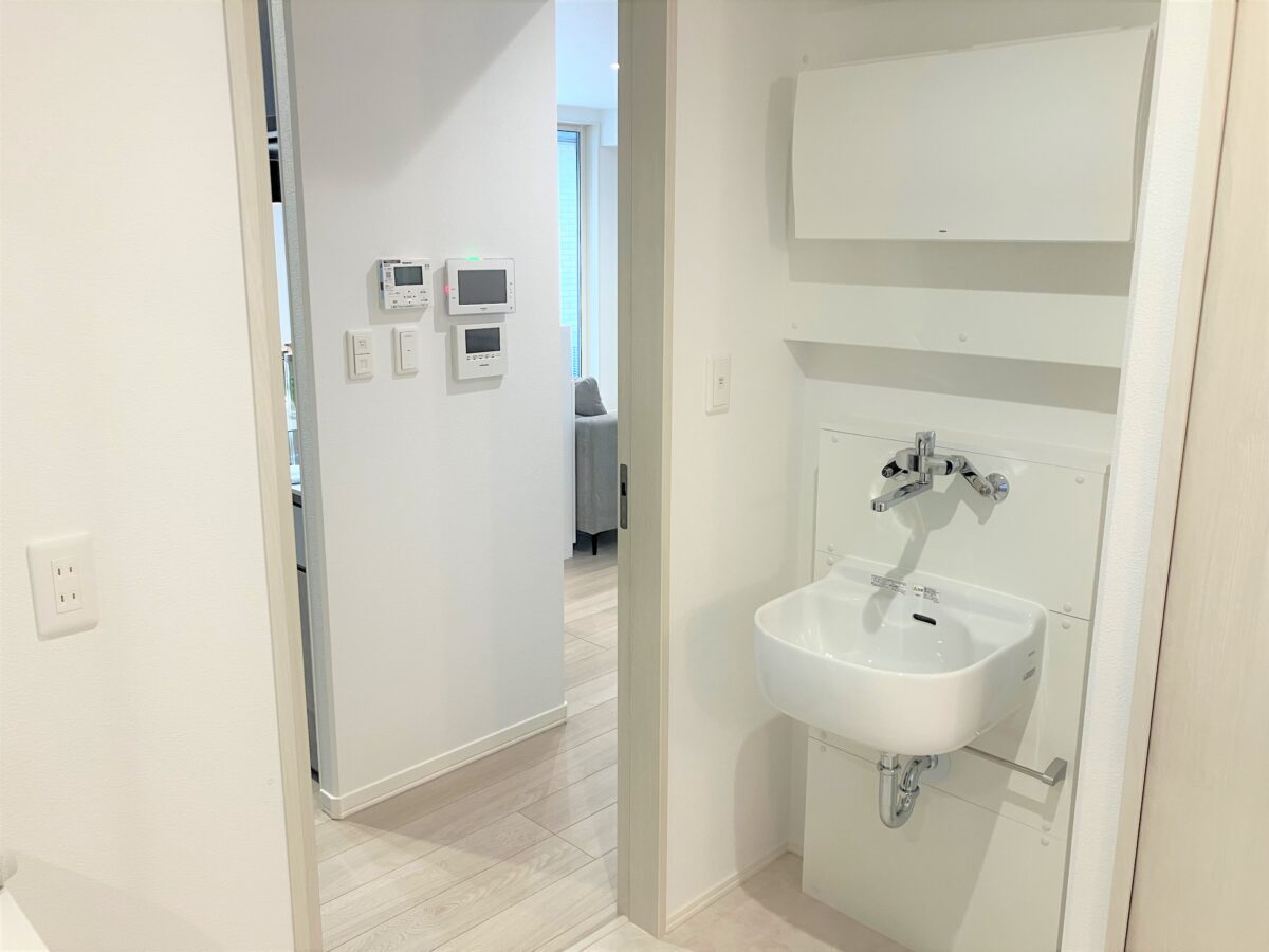 また、洗面室やユーティリティスペースに深型のスロップシンクを設置しておくと、シャンプーや汚れたおもちゃの洗浄など、楽な姿勢で利用でき、飼い主さんの負担も軽減。お湯が出る混合水栓があると、冬でも快適です。